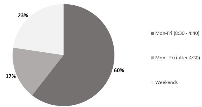 Figure 3: Proportion of services delivered to Wiisokotaatiwin clients by Naotkamegwanning Community Care Program by day and time (May–August 2015)