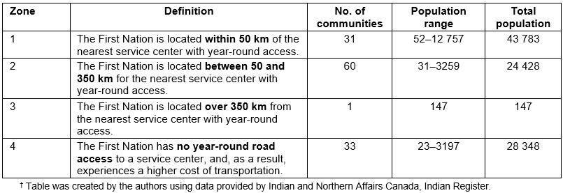 Table 1: Ontario First Nation communities by Geographic Zone (Remoteness): 20163†