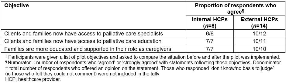 ii. Increased collaboration Formal partnerships and service agreements were in place (Table 2) and participants perceived the pilot to have resulted in increased collaboration among HCPs (Table 6).