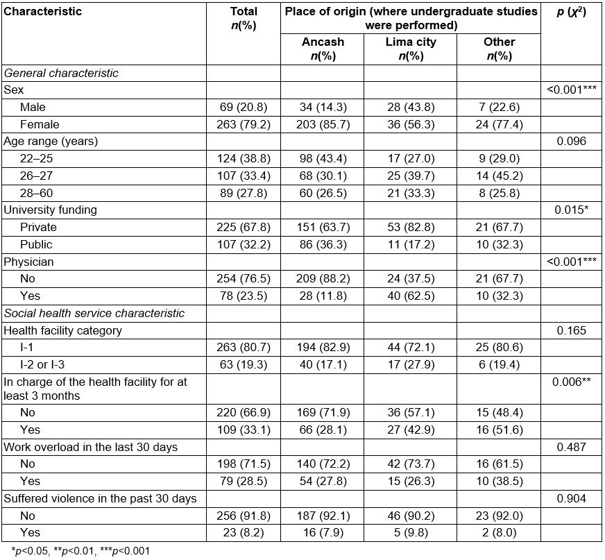 Place of origin was defined as the place where health professionals completed their undergraduate professional studies. It was evaluated through a direct question, and subsequently categorized as follows: (1) Ancash, (2) Lima city and (3) other cities. Lima city was considered as a separate option because the vast majority of universities with health professions are located in this city.