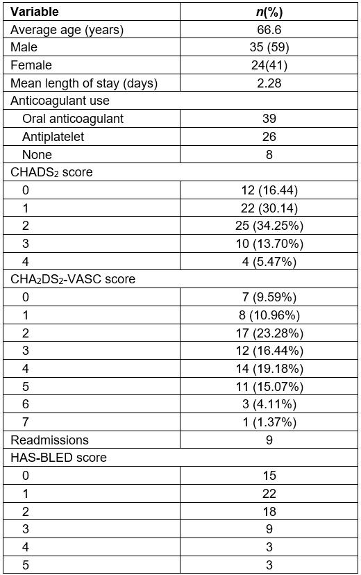 Table 1: Study characteristics of patients with atrial fibrillation (N=59)