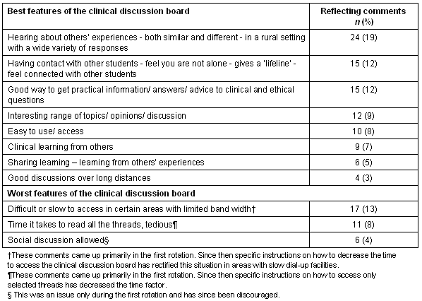 Table 3: Comments on the best and worst features of the clinical discussion board