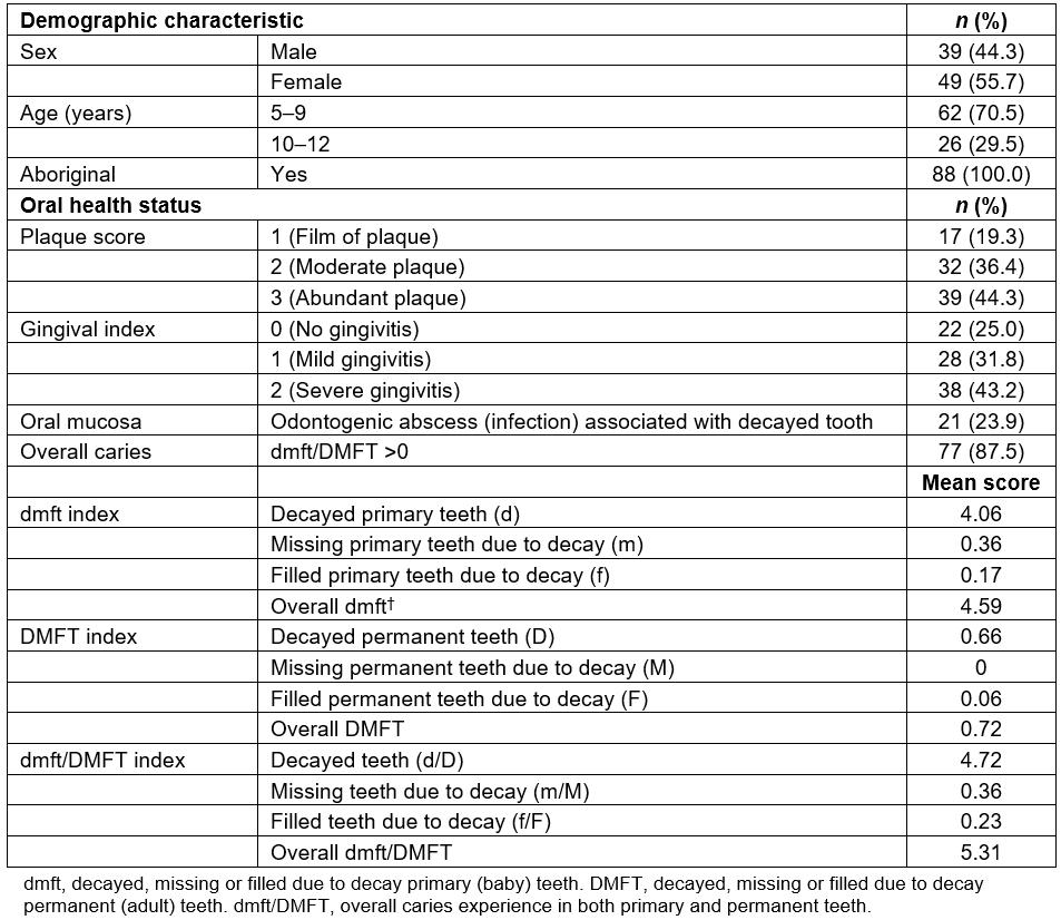 Table 1: Demographic characteristics and oral health status of participating Aboriginal children (n=88)