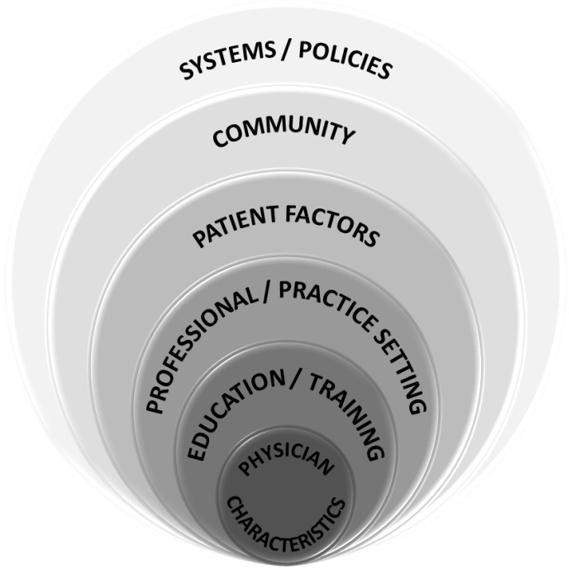 There is little literature on the impact of factors outside of the community location on scope of practice. Both the published literature and this study have established that practice location appears to influence scope of family practice. Other studies have also identified that personal physician characteristics and professional factors influence family physicians’ scope of practice6,7. Moreover, the patient-centered clinical method denotes that patient factors affect clinical practice 21. In addition, the findings of this study suggest that family medicine residency training programs also likely play a significant role in affecting graduates’ scope of practice. A study of internal medicine residents has found that the nature of the residency training environment (high v. low practice intensity) had an effect in formulating the practice style of residents22. Each resident has an impending potential at graduation that is realized through the impact of the communities where they work. The scope of practice may evolve according to the demands placed on the practitioner and it is possible that these demands also may change over time. Figure 1 is proposed as a summary framework of the factors that have been reported to be associated with scope of family practice.