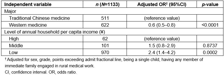 Factors associated with preference of undergraduates’ independent decisions to work in rural areas
