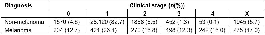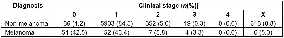 Table 4: Clinical stage of skin cancer, Barretos Cancer Hospital Registry, 2004–2013