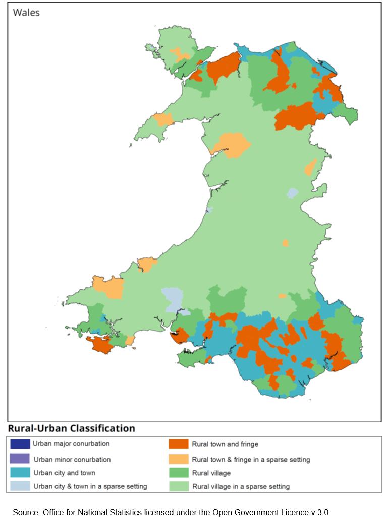 Figure 1: Map of Wales demonstrating rural-urban classification for Middle Layer Super Output Areas, 2011.