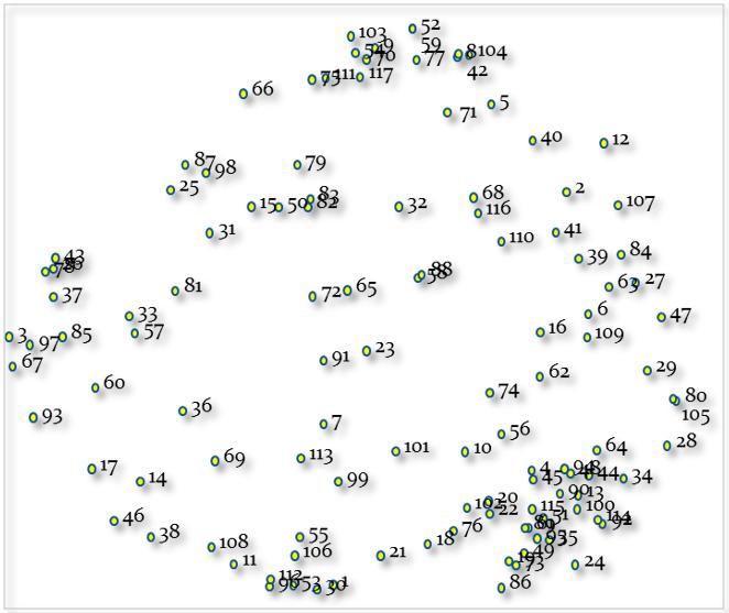 Figure 2: Computer-generated point map of 117 statements with stress value of 0.28.