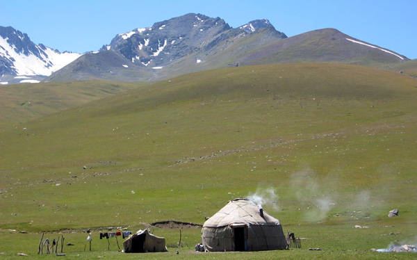 Figure 1: Family yurt (felt tents) in the Susaanmyr Valley, Kyrgyzstan (altitude 2500 m).