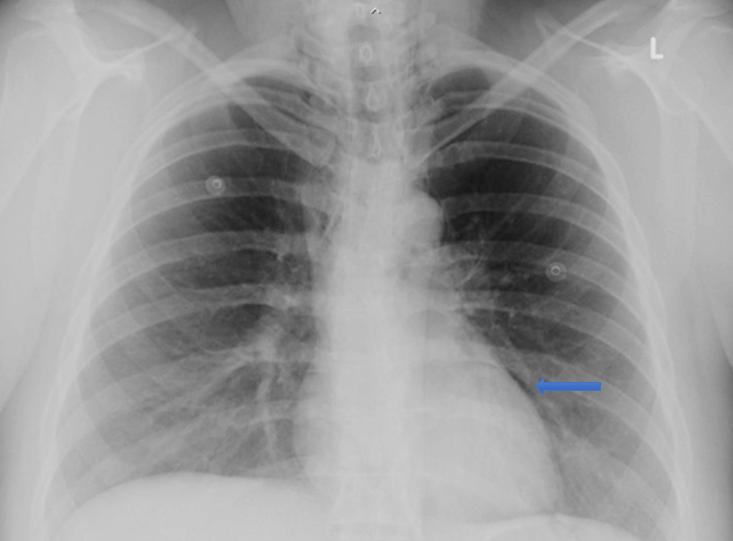 Figure 1: Chest X-ray of the patient, showing pneumomediastinum.