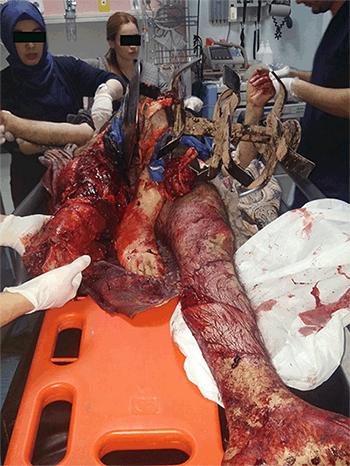 Figure 1: The patient in the emergency room, after an accident with a hoeing machine.