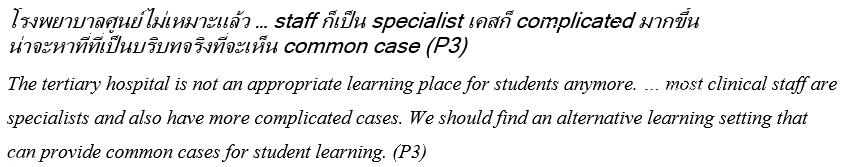 Shift of clinical content RCBME represents a change in the Thai medical educational content as students gain more access to patients with common conditions (including chronic diseases that are manageable in the primary care context) and patients with acute care conditions that need initial emergency management by rural doctors at the primary hospital such as acute trauma, and life-threatening medical conditions. Rural patients will potentially provide students with opportunities for greater authentic learning. Contact with patients over time may enable student–patient and student–practitioner relationships to develop.