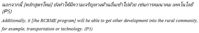 A future for CPIRD students as well-educated rural doctors RCBME in the Thai context will most dramatically affect the experience of CPIRD students during their medical training. The success of an RCBME program will hinge on the acceptability of the program for this stakeholder group and how they embrace the opportunities to learn in rural areas. Student participants in this study saw that Thai RCBME could be a great opportunity for CPIRD students engaging not only with rural patients and health services, but also with local communities. Other stakeholders pointed out that students will need to be well prepared for their transition to the RCBME program because this will be a new way of clinical learning.