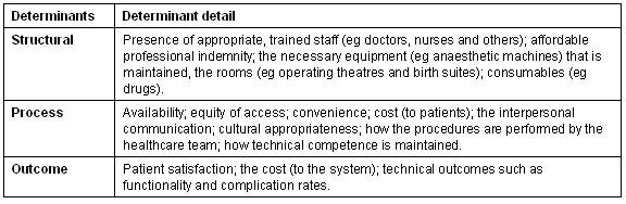A fundamental issue is the lack of agreement on what constitutes quality in rural procedural care. Quality of care is a complex, multi-perspective construct, where different stakeholders may hold differing views on what comprises quality and how it should be measured. Doctors performing procedures may tend to focus on technical quality and allow for an 'unavoidable' error rate. Patients are more likely to focus on access, availability, cost, interpersonal communication and functional outcome. Funders and regulators may focus on cost control. Increasingly, judgements about quality are seen as requiring consideration of a combination of factors, including the views of consumers and health professionals3-5.