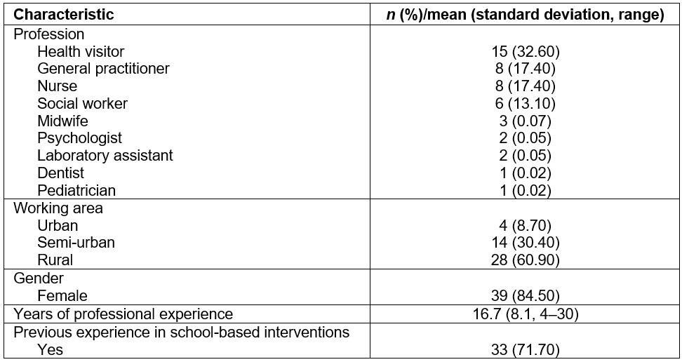 Table 1: Primary healthcare professionals’ characteristics (n=46)