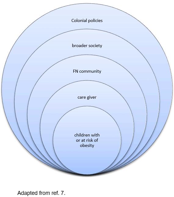 Obesity is influenced by a complex interplay between genetics and physiology19,20 as well as the social environment17. The social environment includes aspects such as income, education, early childhood development, and food insecurity also referred to as the social determinants of health21,22. First Nation communities lag behind non-Indigenous communities on determinants such as income, education, housing, labour force activity, health care, welfare, and social services23. This lag has been attributed to Canada's legal, institutional, and policy framework such as the Indian Act and residential schools24.