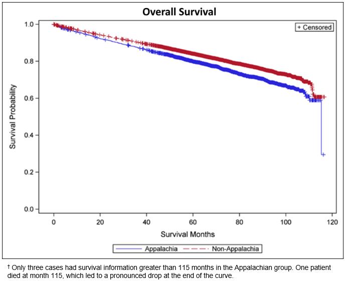In this population-based analysis, there was a significant difference in PC survival between men from Appalachian Kentucky and that of men from non-Appalachian Kentucky. This study supports the concept that patients from Appalachia generally present with later stage, more aggressive disease. This is likely most impacted by the differences in socioeconomic and educational backgrounds of the Appalachian and non-Appalachian population that may delay diagnosis and care. Long-term efforts to improve cancer care in this population must focus on barriers to early diagnosis and treatment. Improvements in socioeconomic status and education levels, which are independent predictors of poor outcomes in this population, must be achieved in order to see a decrease in PC mortality rates in Appalachian Kentucky.