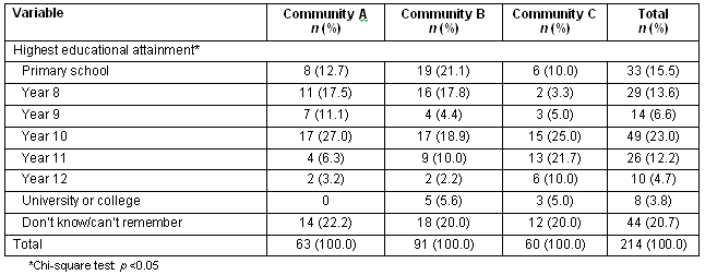 Approximately one-third of carers had had no secondary schooling (36%) and one-fifth (21%) could not recall their highest level of educational attainment (Table 2).