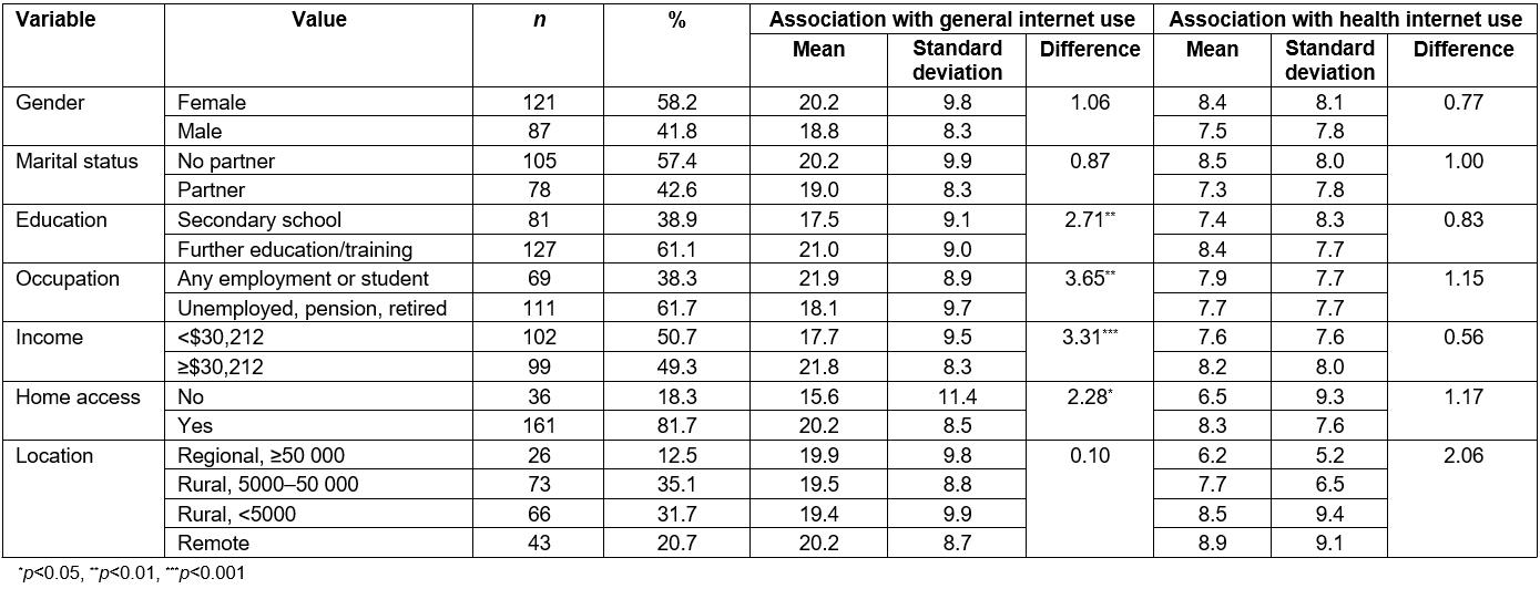 At a policy level, the National Digital Health Strategy is currently being implemented. However, its effectiveness is likely to be challenged by digital inequity. Digital inclusion is strongly affected by equity-related variables such as income, education, employment and geography23. Consequently, consideration needs to be given to broader contextual factors before rolling out initiatives unlikely to be adequately utilised by the community. The internet presents an opportunity to improve health outcomes for those with the means, capacity and motivation to use available resources. A concerted effort should therefore be made to improve structural deficits, particularly in the areas of improving infrastructure and access, while research continues the search to identify factors relating specifically to use of the internet for health.