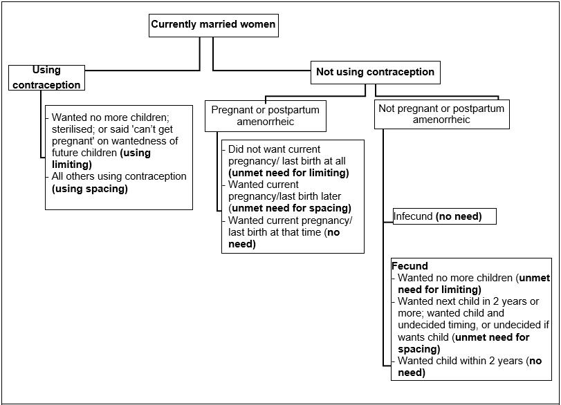 The unmet needs for family planning are defined as those of the percentage of women who are fecund and sexually active, but do not use any contraception method, or do not want any more children or want to delay the delivery of the next child1. The unmet need for family planning reveals the gap between women’s reproductive intentions and their contraceptive behaviours and is a valuable indicator in monitoring and evaluating family planning programs and for improving access to reproductive health services1,2.