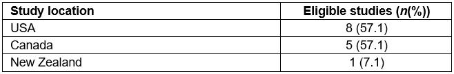 Table 2: Body of evidence examined according to study location