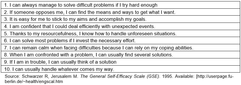Table 1: General Self-Efficacy Scale – English version