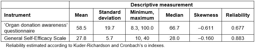 Table 4: Descriptive measurements of ‘Organ donation awareness’ questionnaire and General Self-Efficacy Scale scores