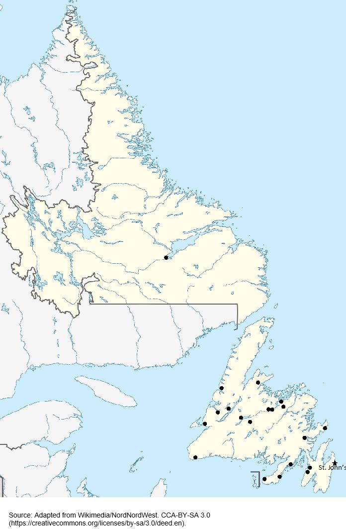 Figure 1: Participant locations across Newfoundland and Labrador.