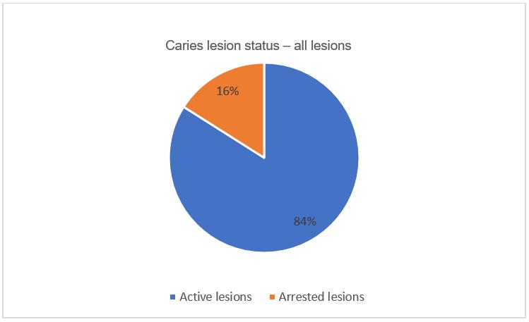 Figure 1: Caries lesion activity status for all caries lesions (ICDAS 1–6) in primary teeth of children aged 6–11 years.