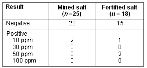As well as the taste preference, there was no significant difference in iodine level between the mined and iodine-fortified salt samples (p >0.05), indicating that those who did use iodised salt may not have been gaining the expected advantage. This is due to a quality control failure in iodine-fortified salt manufacture.