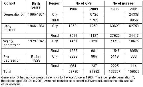 Table 1: Definition and size of GP and nurse cohorts in Australia for the years 1986 and 2001