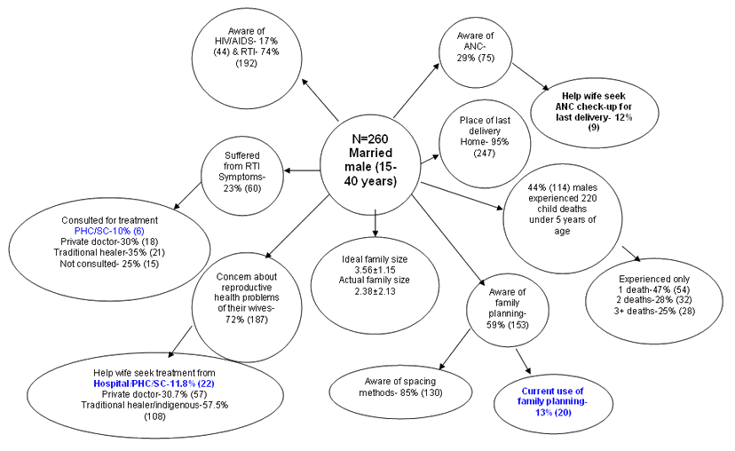 One limitation of these data are that they were generated by surveying ever-married females in the age group 13-49 years and lack information on men's reproductive health. There are no data on Scheduled tribe males' involvement in reproductive health and their problems. The present study is a small effort in this direction and pilots a process, using the Khairwar tribe, which can be replicated to understand other rural tribal groups. The main purpose of this study was to capture men's awareness, knowledge, attitude and the extent of their participation in different aspects of reproductive health.