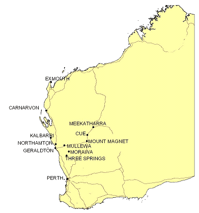 Figure 1: Locations of Western Australian rural sites participating in the carers program.
