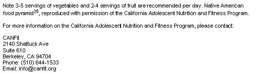 35. Hinkle A. Native American Food Pyramid. (Online) no date. Website address http://www.nal.usda.gov/fnic/Fpyr/NAmFGP.html (Accessed 10 October, 2006).