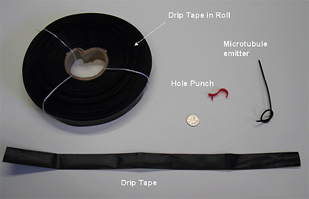 Figure 3: Plastic tubing used for laterals. The tubing is punctured with the hole punch. The microtube emitter is inserted into the hole.
