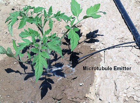 Figure 4: Microtube emitter supplying irrigation directly to the plant.