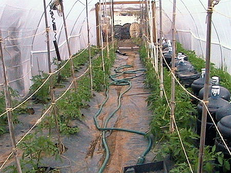 Figure 5: Exterior of the low-tech, low-cost plastic tunnel for growing vegetables year round.