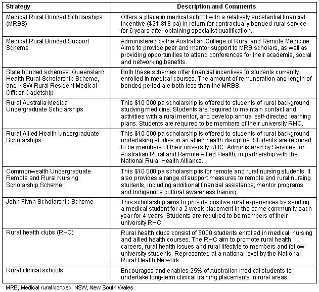 The schemes relying on bonded student places to increase the rural health workforce have attracted significant debate3,4 but will not be further discussed here.