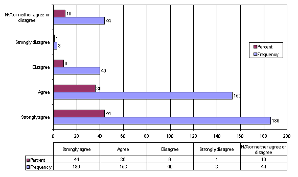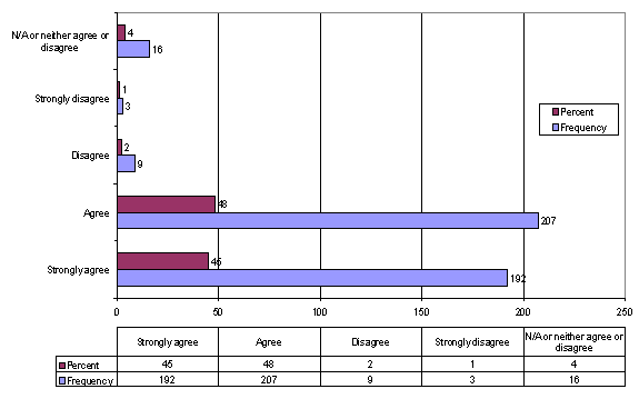 A second question (Fig 2) pertains to respondents' perceptions as to whether access to CME alleviates professional isolation. Again, data suggest that 93% of respondents (n = 427) agree or strongly agree that access to CME alleviates professional isolation.