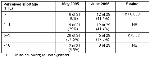 Table 1: Perceived GP workforce shortage in Tamworth during 2005-2006
