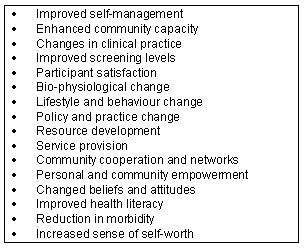 Figure 1: Indicators of change in Aboriginal and Torres Strait Islander health promotion program evaluations.