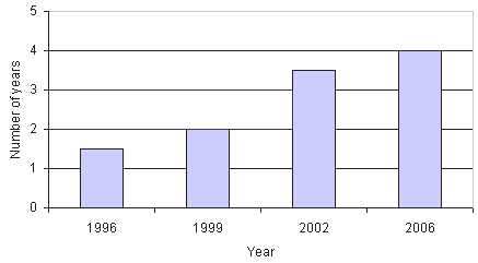 Retention of staff is as important as staff recruitment7. Retention rates of psychiatrists employed by LRH improved from an average of 18 months in 1994 to an average of 4 years 2006 (Fig2). There were a number of important contributing figures.