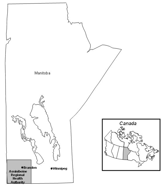 Although Canada is the second largest country in the world, 80% of its inhabitants live in urban centres. The Province of Manitoba represents the national average. According to Statistics Canada22, the 2001 population of the Province of Manitoba was 1.17 million people with two-thirds of this total living in the capital city of Winnipeg (Fig1). This two-thirds, unfortunately, suffer from the ('tongue in cheek') urban health problem of 'perimeteritis', a condition caused by living within the perimeter highway that bounds Winnipeg. As the second largest community in Manitoba, the City of Brandon (population 43 000) serves as a service centre for southwestern Manitoba. These services include manufacturing and retail, a university, community college, a full-service hospital with emergency and surgical services, and specialized health clinics. The rural region surrounding Brandon is served by 20 healthcare facilities located in smaller communities that range in size from 300 to 3300 people. This spatial pattern and density is analogous to that found in various Prairie and Great Plains jurisdictions of North America (eg Nebraska and Kansas in the United States; southern Saskatchewan in Canada). Healthcare delivery in the Province of Manitoba is managed through Regional Health Authorities (RHAs). Southwestern Manitoba (Fig1) is served by two health authorities. The Brandon RHA (BRHA) serves the city of Brandon. The Assiniboine RHA (ARHA) serves the rural areas and communities that surround Brandon. This article focuses on the ARHA, the more rural of the two. The following analysis examines how healthcare centre managers interpret subjects and concepts related to the context of their work: rural, community, wellbeing, health, and healthy rural community. The article concludes by relating these interpretations to the distinct rural-urban dichotomy that exists in the Province of Manitoba.