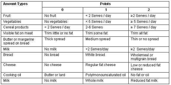 Table 1: The Food Habit Score system