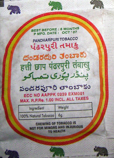 I participate in regular camps in rural and remote Indian villages to screen patients for oral cancer. Recently I visited a shop in such a village (Karnataka) and observed local tobacco preparations being sold. The cover of the product detailed the contents in many regional languages, but the statutory warning that tobacco chewing is injurious for health was only stated in English (Fig 1).
