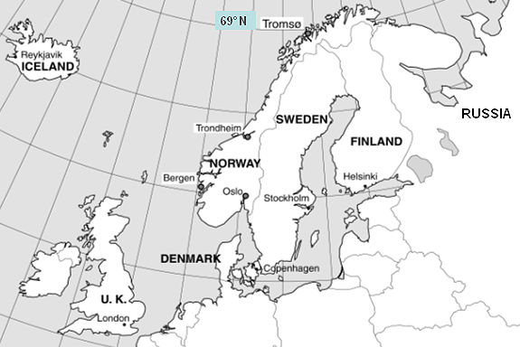Figure 1: Map showing the location of Norway in northern Europe.