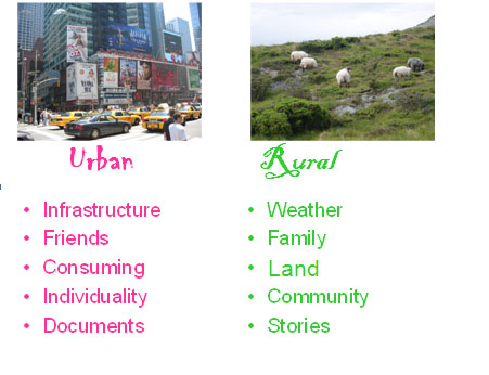Figure 3: Summary of key differences between urban and rural determinants and values.
